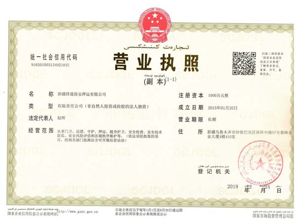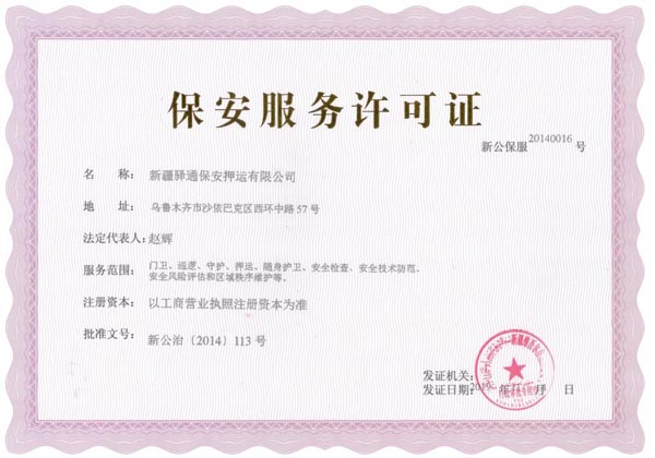 新疆驛通保安押運(yùn)有限公司,注冊資本1000萬元人民幣,具有獨(dú)立法人資格,下設(shè)部門有:綜合管理辦公室、人力資源部、指揮中心、保衛(wèi)部、財(cái)務(wù)部、業(yè)務(wù)部、押運(yùn)部、督察隊(duì)、公司金庫。公司建立了符合市場和現(xiàn)代企業(yè)要求的經(jīng)營運(yùn)作模式和管理機(jī)制,有一套較科學(xué)的經(jīng)營管理制度、守押勤務(wù)制度、守押作業(yè)規(guī)范化操作制度和標(biāo)準(zhǔn)。